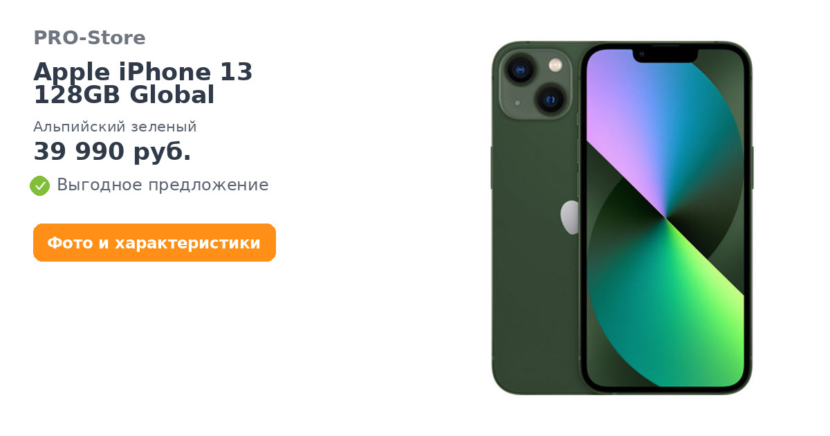 Apple iPhone 13 128GB Global, Альпийский зеленый