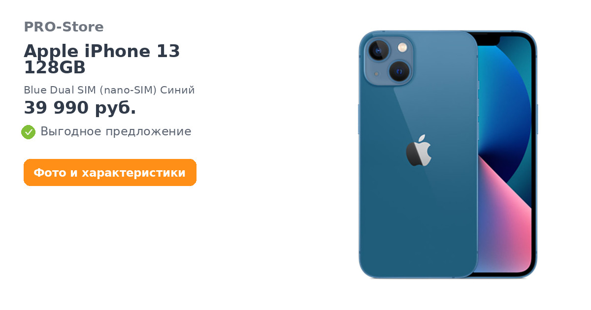 Apple iPhone 13 128GB Blue Dual SIM (nano-SIM) Синий