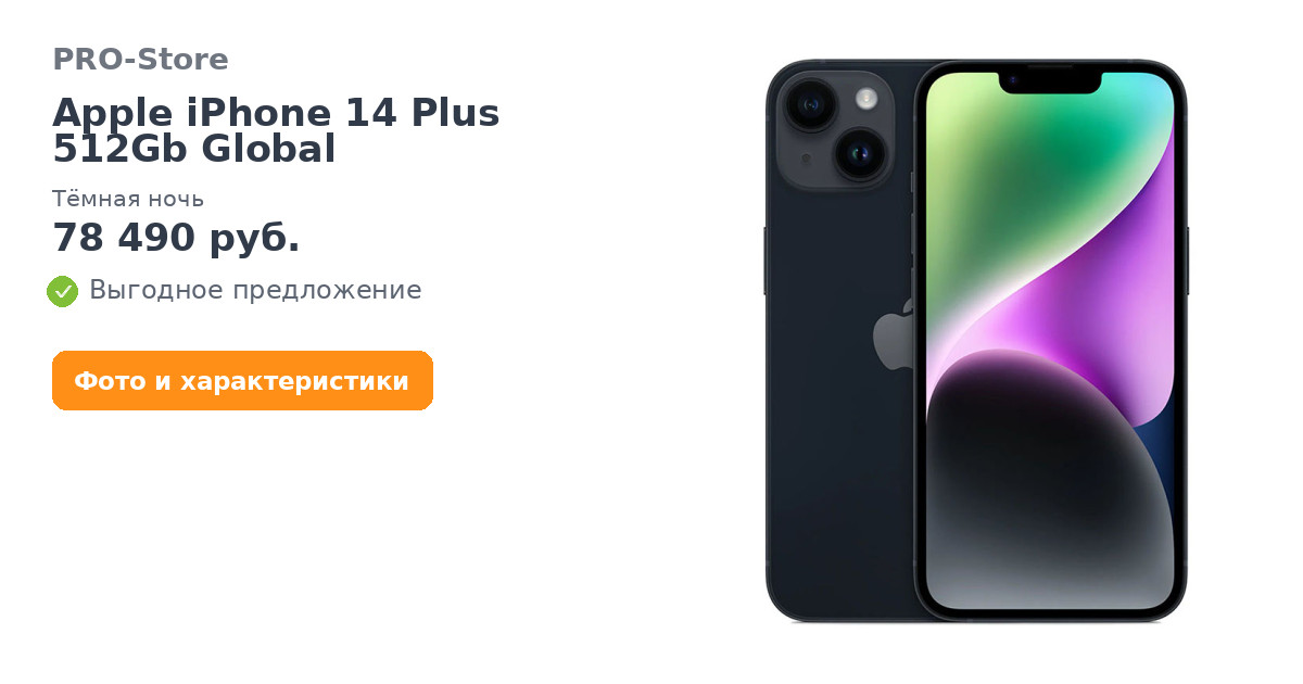 Apple iPhone 14 Plus 512Gb Global, Тёмная ночь