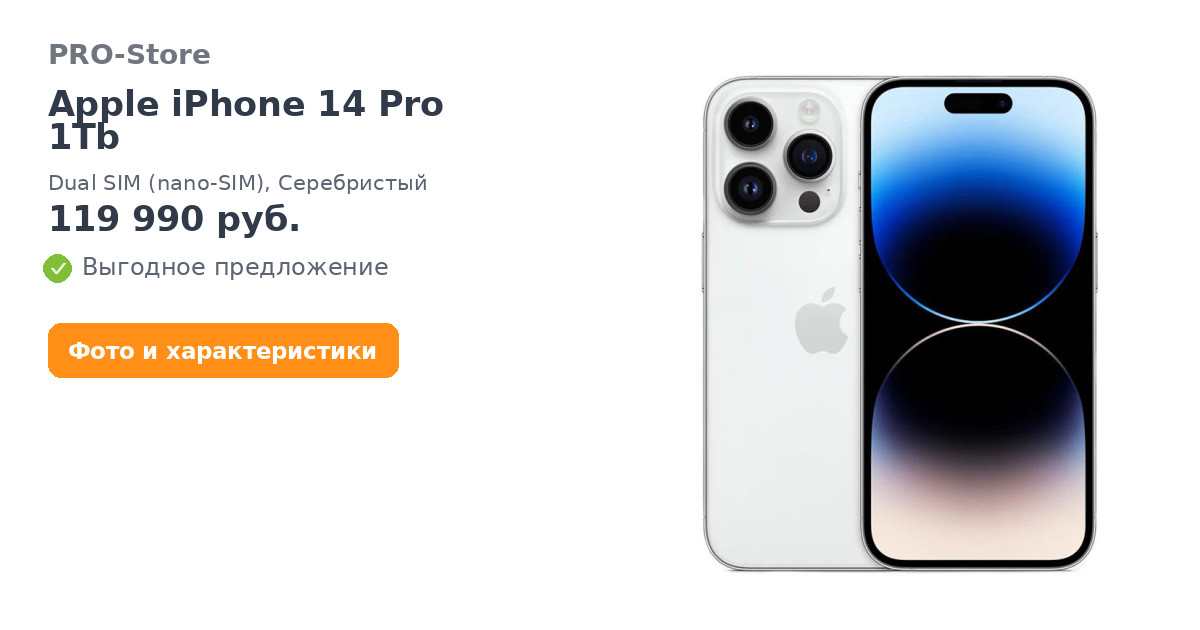 Apple iPhone 14 Pro 1Tb, Dual SIM (nano-SIM), Серебристый