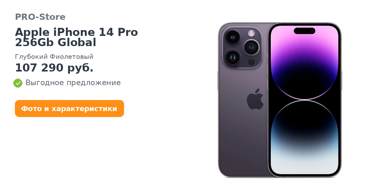 Apple iPhone 14 Pro 256Gb Global, Глубокий Фиолетовый