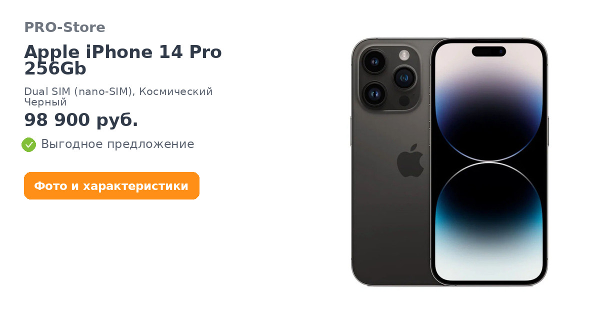 Apple iPhone 14 Pro 256Gb, Dual SIM (nano-SIM), Космический Черный