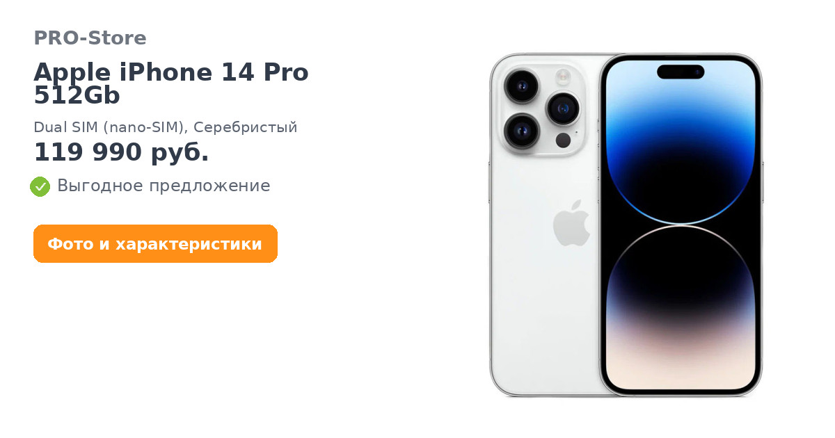 Apple iPhone 14 Pro 512Gb, Dual SIM (nano-SIM), Серебристый
