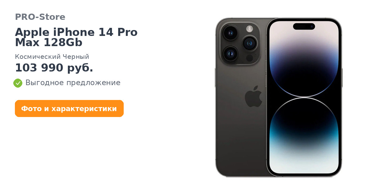Apple iPhone 14 Pro Max 128Gb, Космический Черный