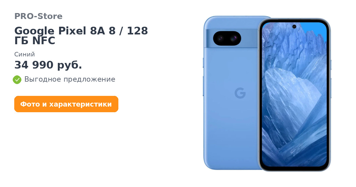 Смартфон Google Pixel 8A 8/128 ГБ NFC, Синий
