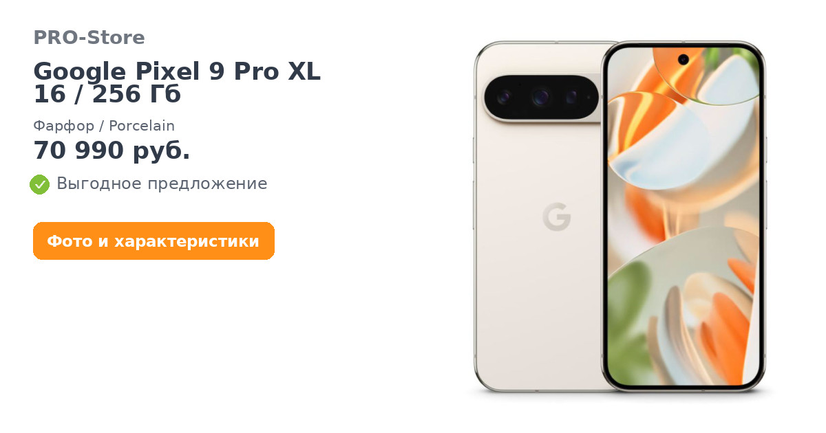 Пиксель для максималистовPixel 9 Pro XL – это большая версия флагмана 2024 года от Google. В этом большом смартфоне, идеально подходящем для комфортного веб-серфинга и развлечений, органично сочетаются стильный дизайн, широкие возможности для съёмки, безопасность и отличная оптимизация и всё это приправлено нейросетевыми функциями и облачными технологиями. Бескомпромиссный Pixel 9 Pro XL создан для всех, кто ценит отточенную работу каждой функции без погружения в нюансы Android и удобство использования. Всё, от великолепного дисплея до продвинутой камеры и длительного времени автономной работы, делает модель отличным выбором не только для поклонников Google, но и для всех остальных пользователей.