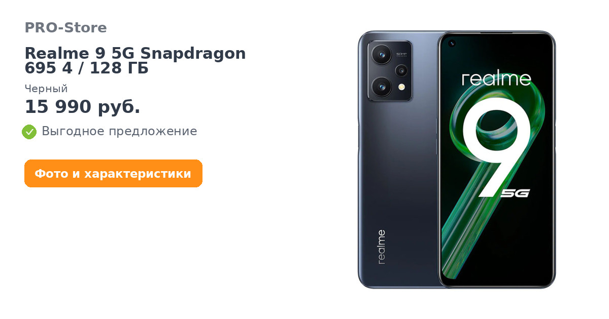Смартфон Realme 9 5G Snapdragon 695 4/128 ГБ, Черный