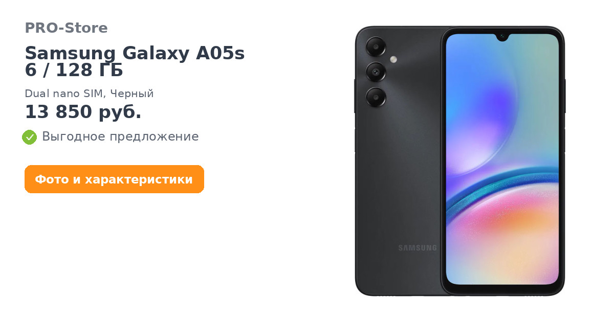 Смартфон Samsung Galaxy A05s 6/128 ГБ, Dual nano SIM, Черный