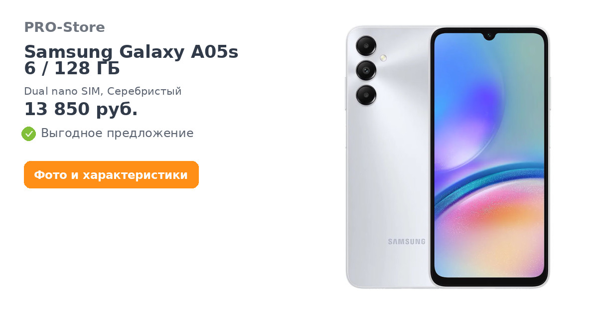 смартфон samsung galaxy a05s 6/128 гб, dual nano sim, серебристый