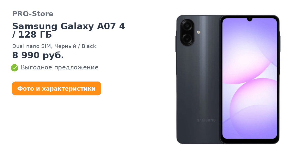 Смартфон Samsung Galaxy A07 4/128 ГБ, Dual nano SIM, Черный/Black