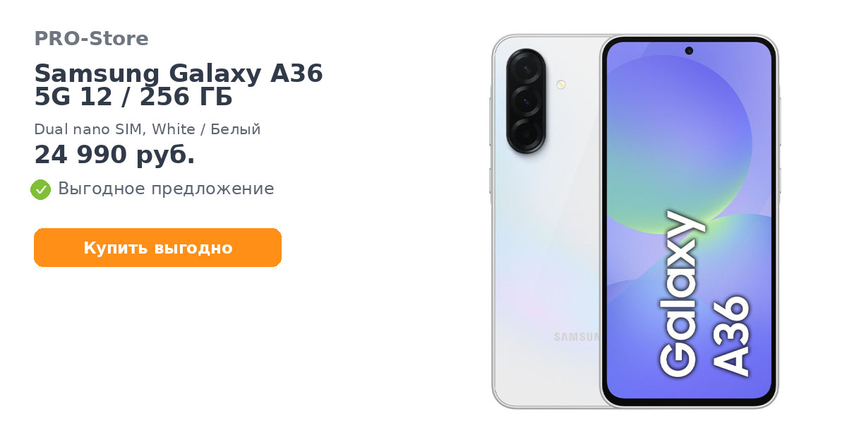 Смартфон Samsung Galaxy A36 5G 12/256 ГБ, Dual nano SIM, White/Белый