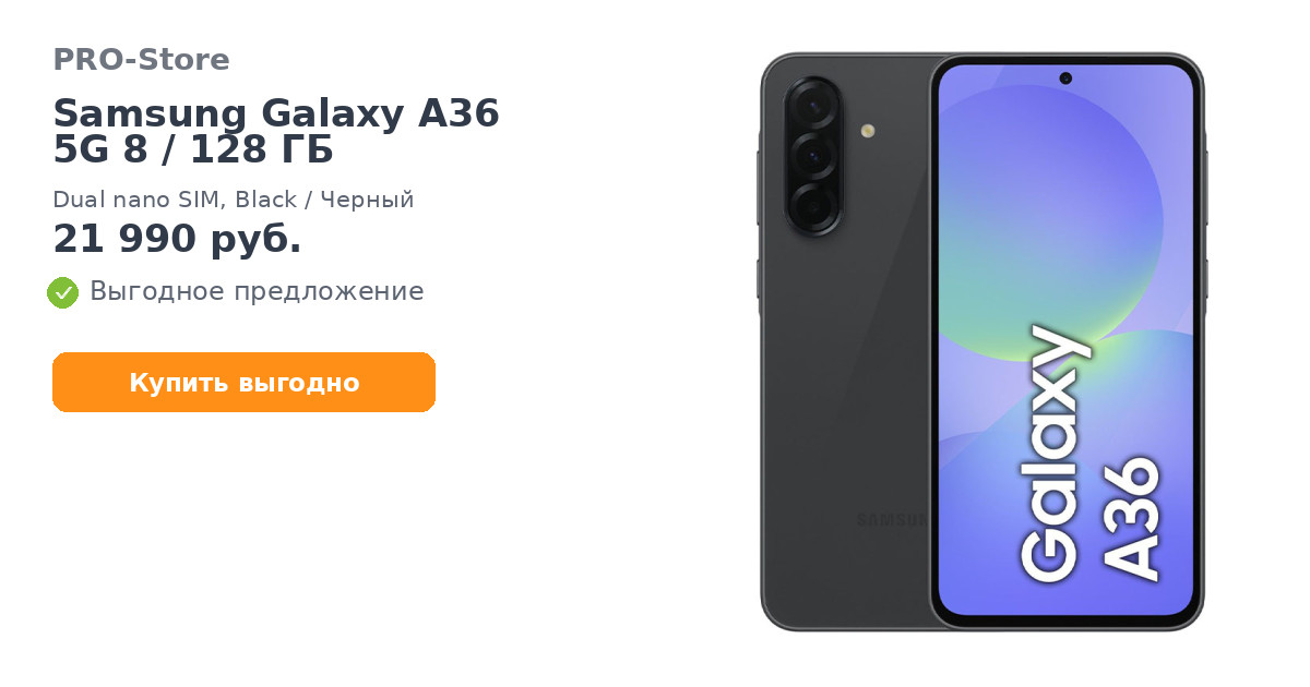 Смартфон Samsung Galaxy A36 5G 8/128 ГБ, Dual nano SIM, Black/Черный