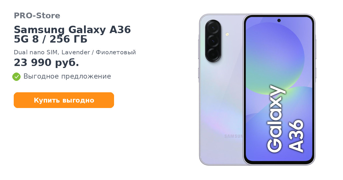 Смартфон Samsung Galaxy A36 5G 8/256 ГБ, Dual nano SIM, Lavender/Фиолетовый