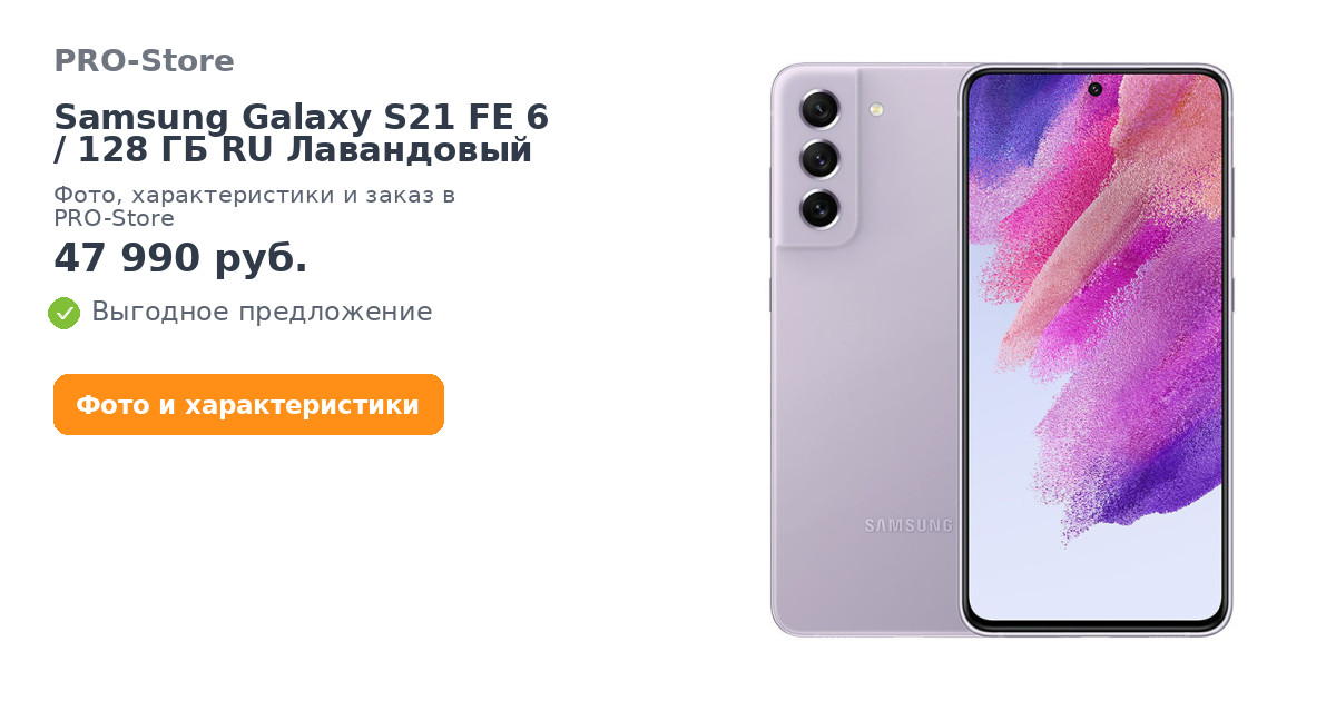 Смартфон Samsung Galaxy S21 FE 6/128 ГБ RU Лавандовый