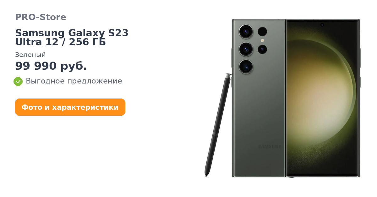 Смартфон Samsung Galaxy S23 Ultra 12/256 ГБ, Зеленый