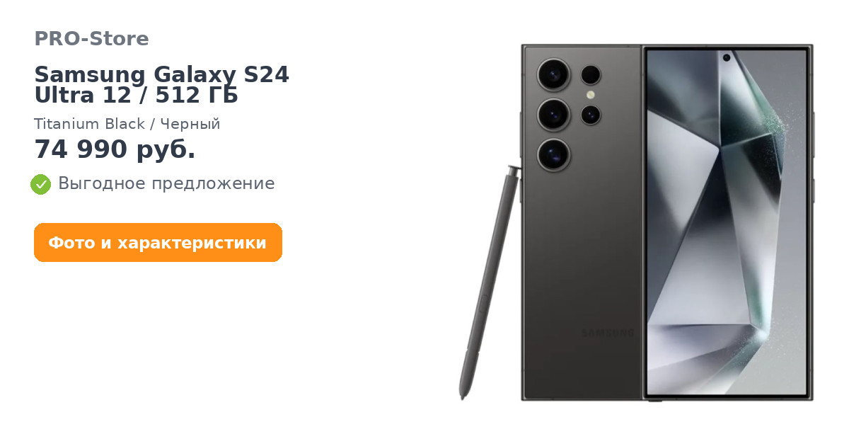 Смартфон Samsung Galaxy S24 Ultra 12/512 ГБ, Titanium Black/Черный
