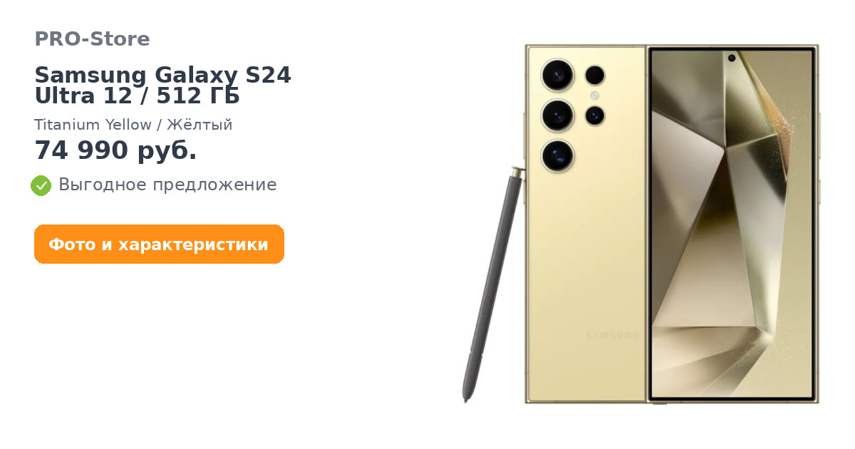 Смартфон Samsung Galaxy S24 Ultra 12/512 ГБ, Titanium Yellow/Жёлтый