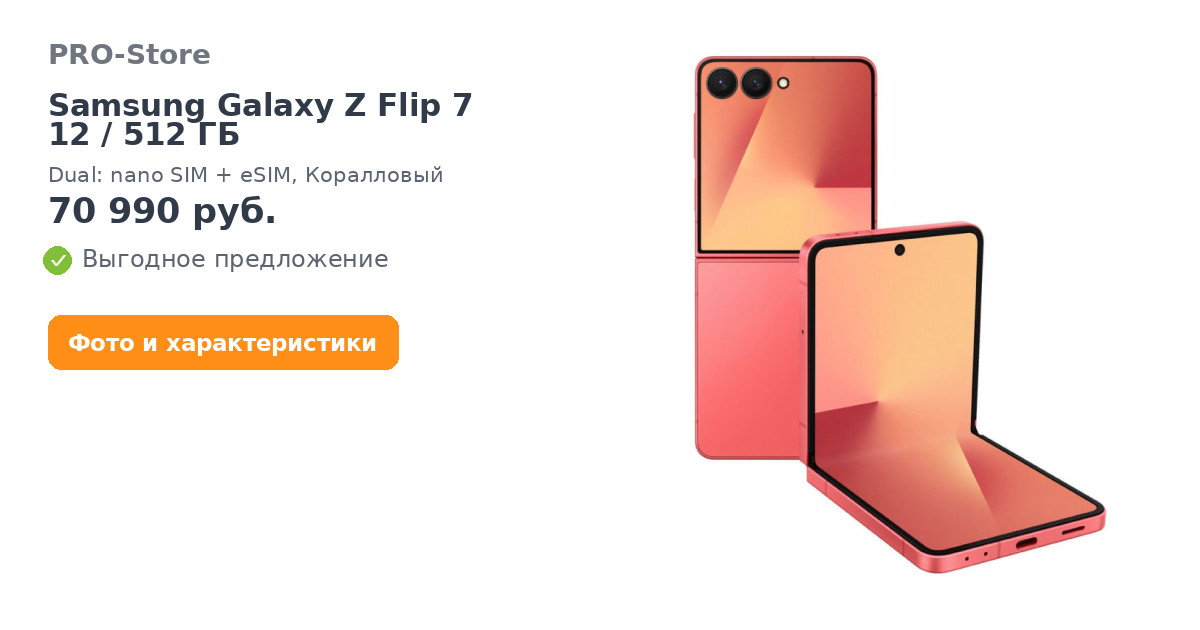 Смартфон Samsung Galaxy Z Flip 7 12/512 ГБ, Dual: nano SIM + eSIM, Коралловый