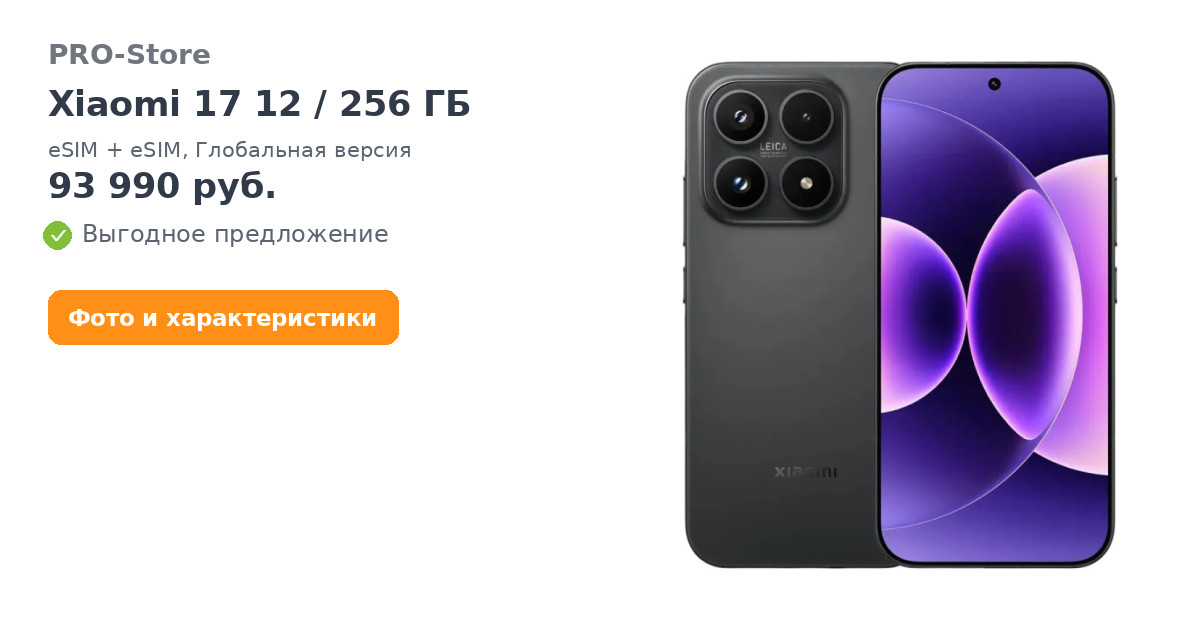 Смартфон Xiaomi 17 12/256 ГБ, eSIM + eSIM, Глобальная версия, Черный/Black