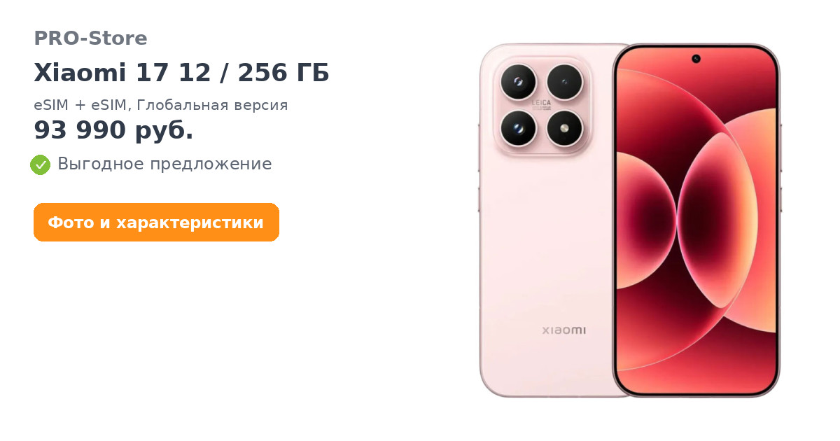 Смартфон Xiaomi 17 12/256 ГБ, eSIM + eSIM, Глобальная версия, Розовый/Alpine Pink