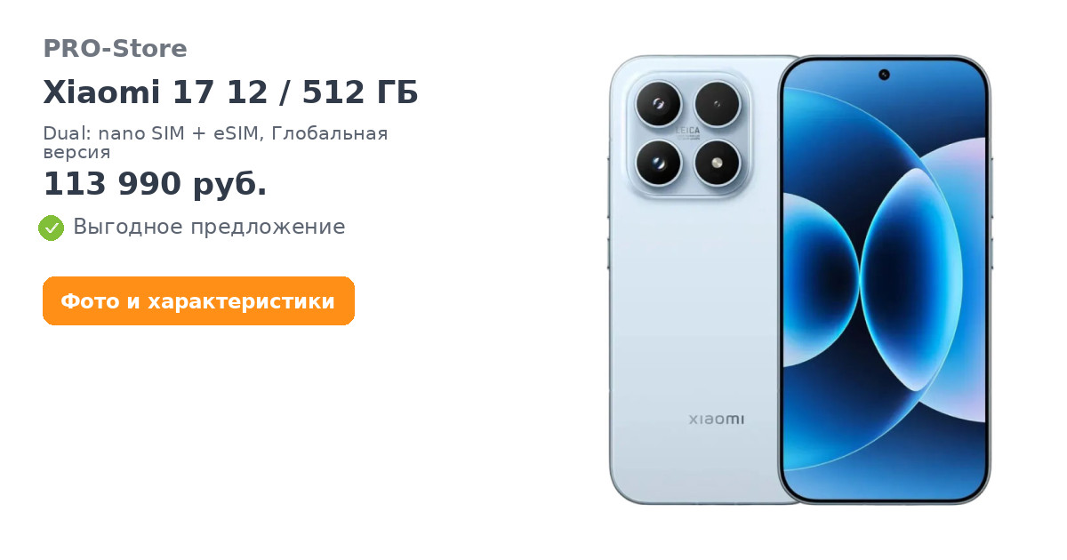 Смартфон Xiaomi 17 12/512 ГБ, Dual: nano SIM + eSIM, Глобальная версия, Голубой/Ice Blue