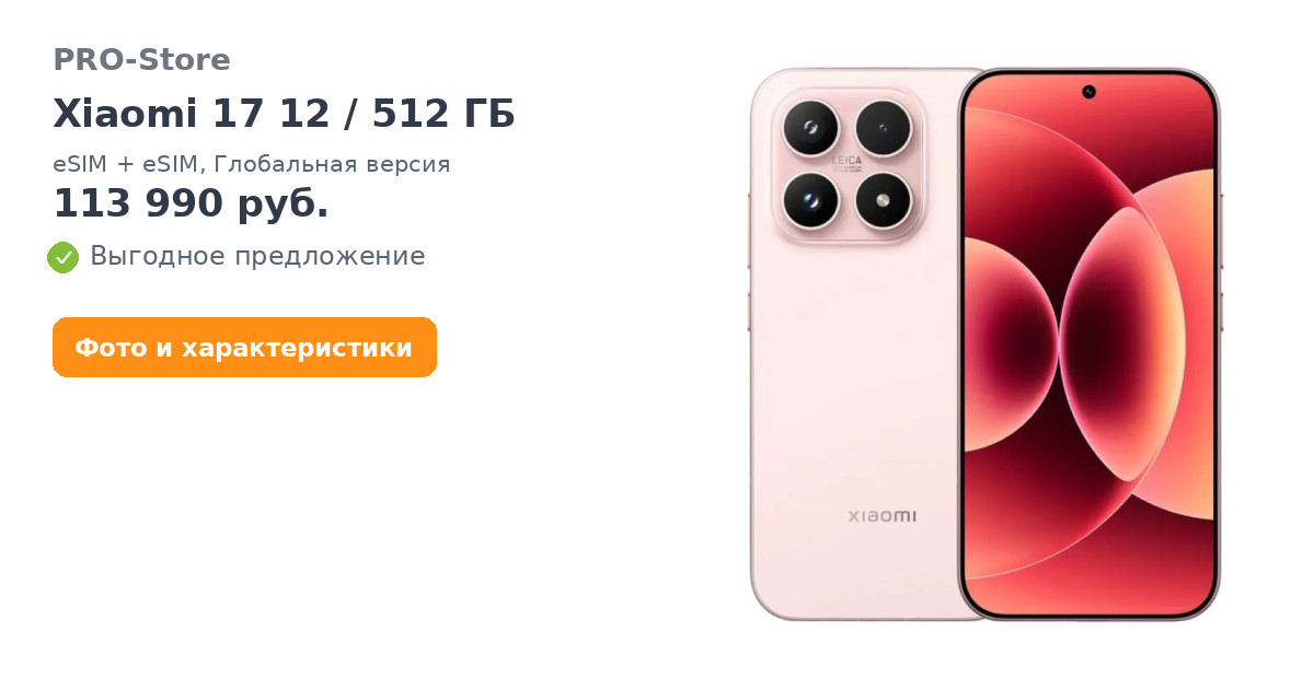 Смартфон Xiaomi 17 12/512 ГБ, eSIM + eSIM, Глобальная версия, Розовый/Alpine Pink