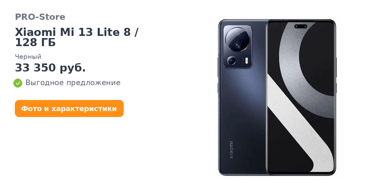 Смартфон Xiaomi Mi 13 Lite 8/128 ГБ, Черный