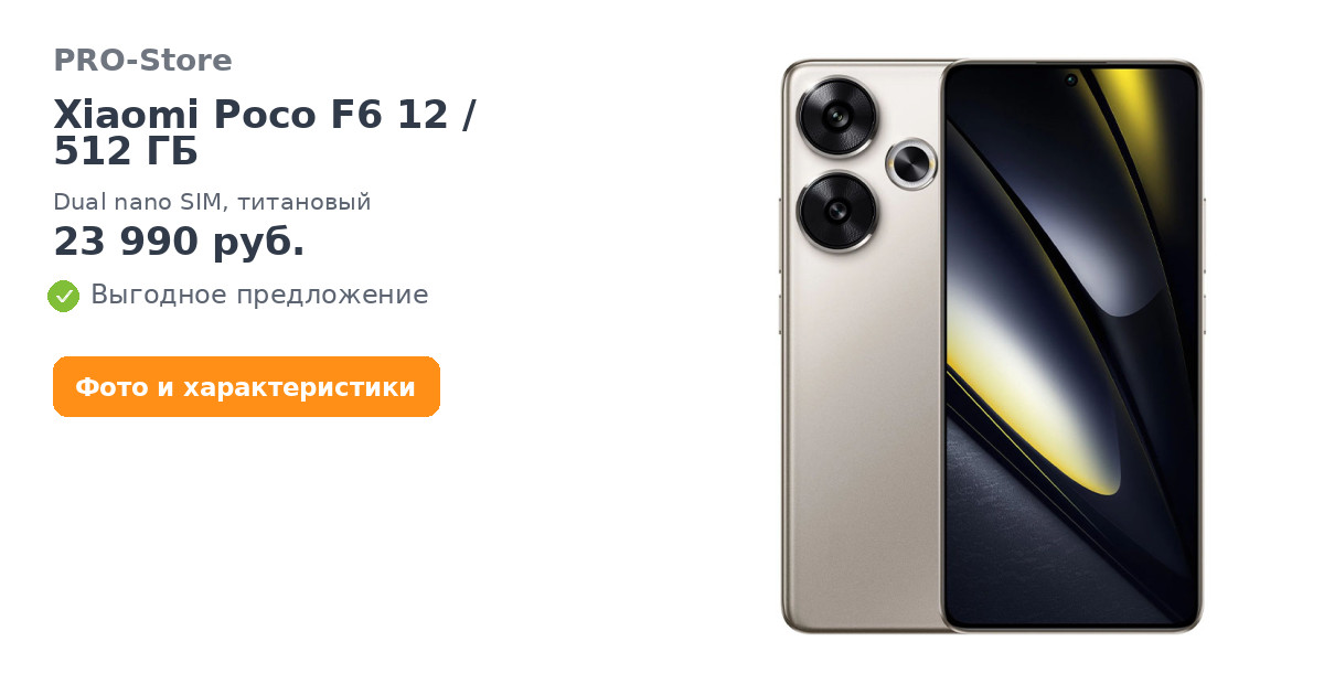 Смартфон Xiaomi Poco F6 12/512 ГБ, Dual nano SIM, титановый