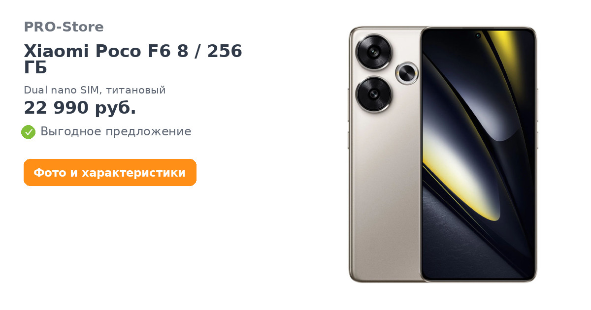 Смартфон Xiaomi Poco F6 8/256 ГБ, Dual nano SIM, титановый