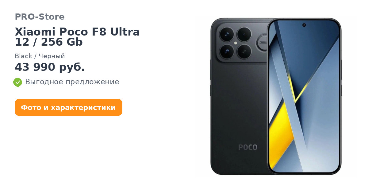 Смартфон Xiaomi Poco F8 Ultra 12/256 Gb, Black/Черный