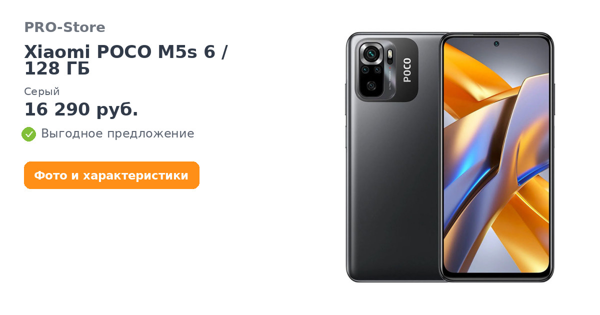 Смартфон Xiaomi POCO M5s 6/128 ГБ, Серый