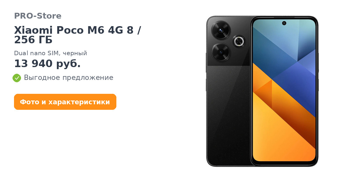 С Смартфон Xiaomi Poco M6 4G 8/256 ГБ, Dual nano SIM, черный покупают