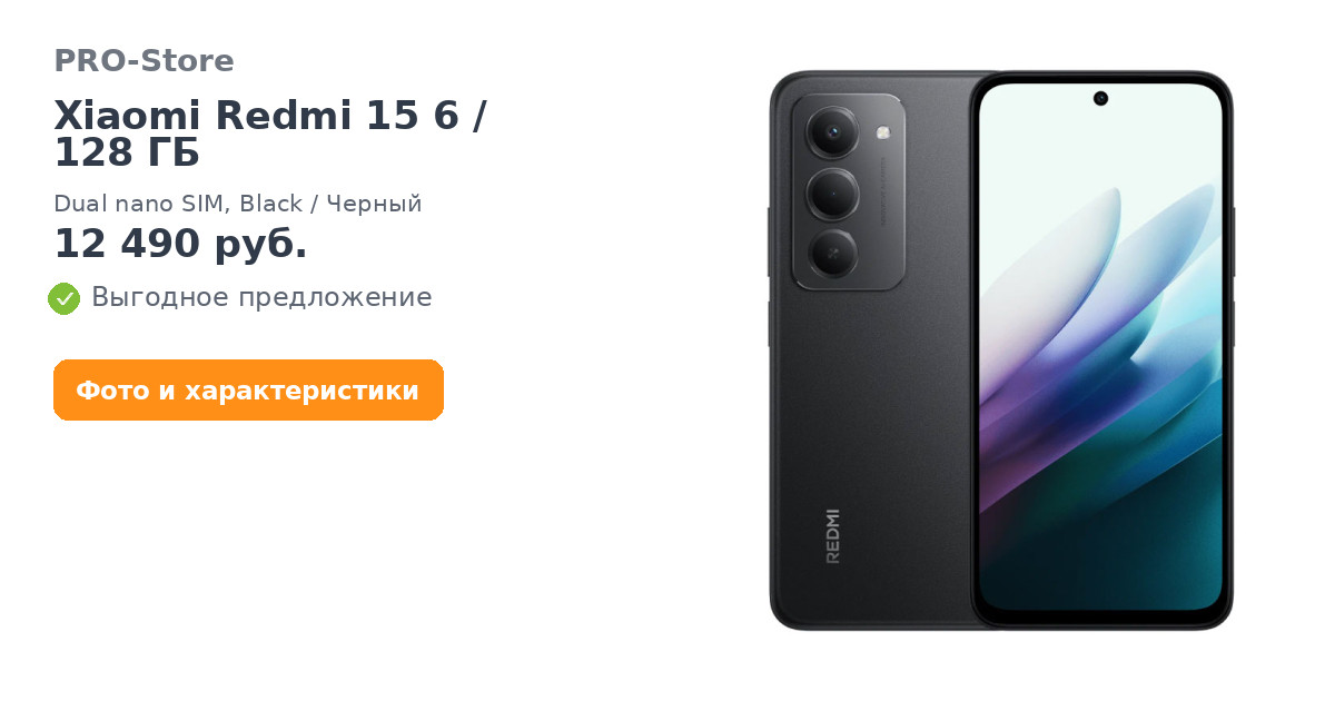 Смартфон Xiaomi Redmi 15 6/128 ГБ, Dual nano SIM, Black/Черный