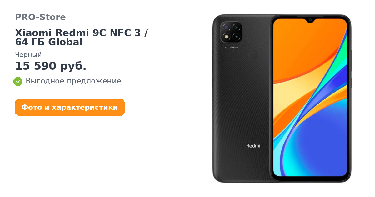 Смартфон Xiaomi Redmi 9C NFC 3/64 ГБ Global, Черный
