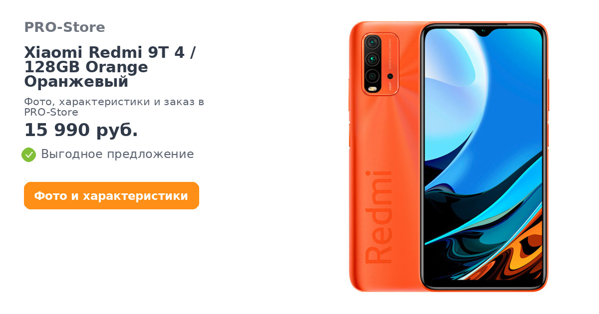 Смартфон Xiaomi Redmi 9T 4/128GB Orange Оранжевый
