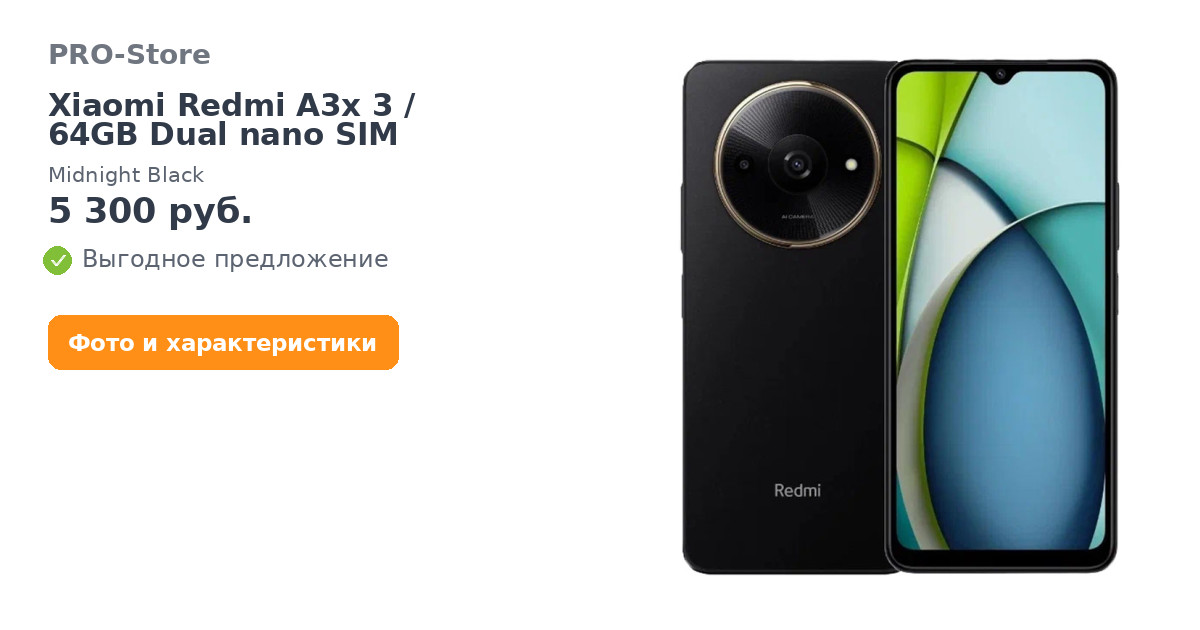 Смартфон Xiaomi Redmi A3x 3/64GB Dual nano SIM, Midnight Black