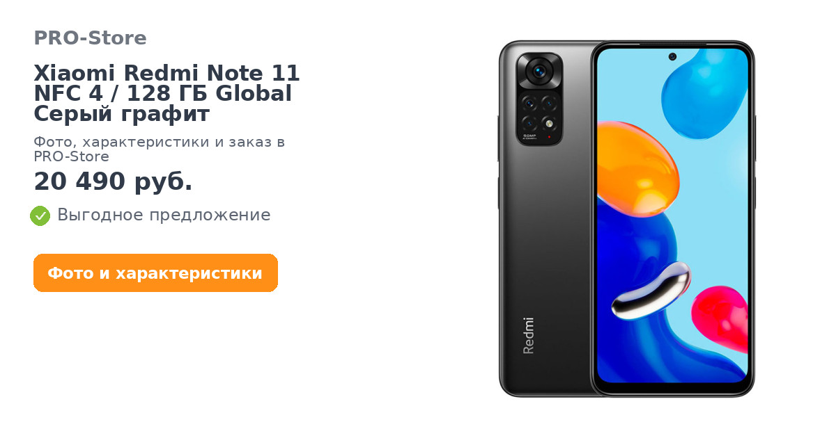 Смартфон Xiaomi Redmi Note 11 NFC 4/128 ГБ Global Серый графит