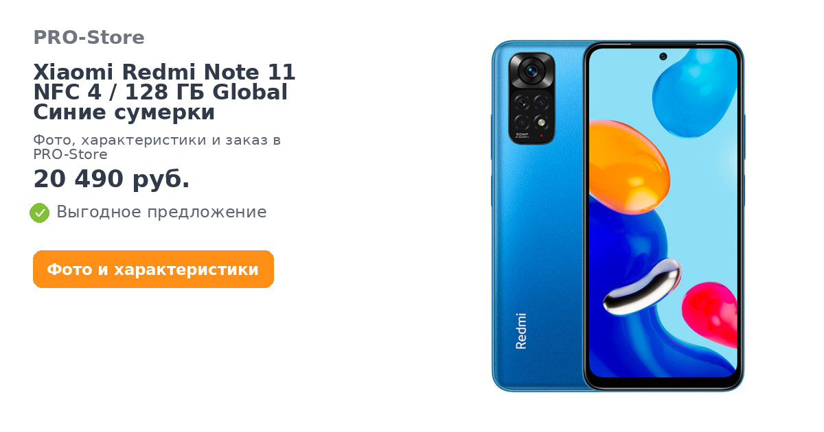 Смартфон Xiaomi Redmi Note 11 NFC 4/128 ГБ Global Синие сумерки