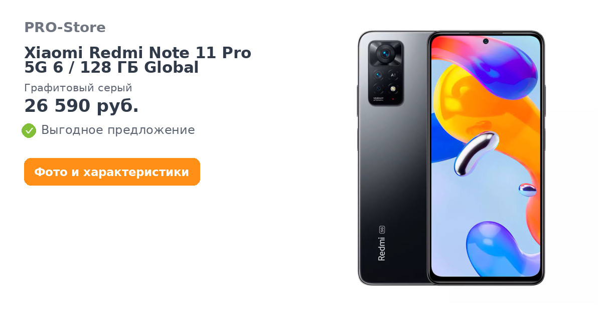 С Смартфон Xiaomi Redmi Note 11 Pro 5G 6/128 ГБ Global, Графитовый серый покупают