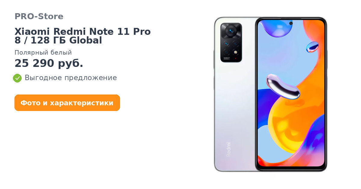 Смартфон Xiaomi Redmi Note 11 Pro — это 120 Гц AMOLED FullHD+ дисплей, поддержка быстрой зарядки мощностью 67 Вт и камера 108 Мп для профессионального качества съемки.
