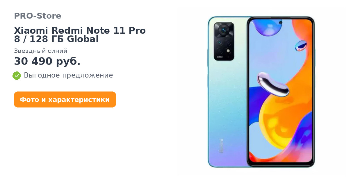 Смартфон Xiaomi Redmi Note 11 Pro — это 120 Гц AMOLED FullHD+ дисплей, поддержка быстрой зарядки мощностью 67 Вт и камера 108 Мп для профессионального качества съемки.