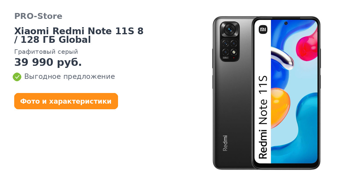 Смартфон Xiaomi Redmi Note 11S 8/128 ГБ Global, Графитовый серый