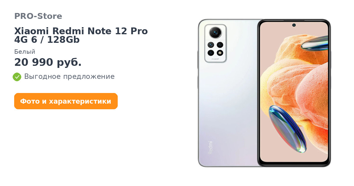 Смартфон Xiaomi Redmi Note 12 Pro 4G 6/128Gb, Белый