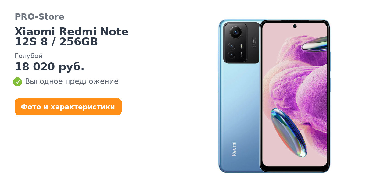 Смартфон Xiaomi Redmi Note 12S 8/256GB, Голубой