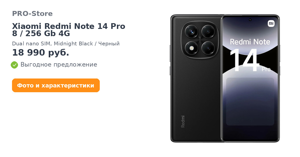 Смартфон Xiaomi Redmi Note 14 Pro 8/256 Gb 4G, Dual nano SIM, Midnight Black/Черный