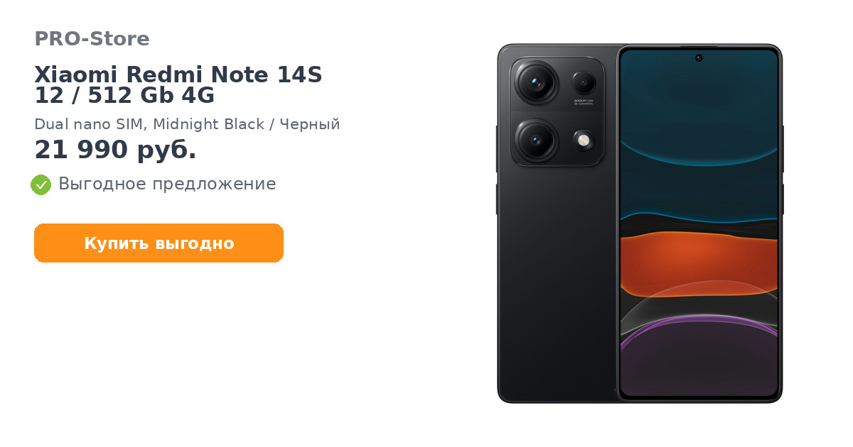 Смартфон Xiaomi Redmi Note 14S 12/512 Gb 4G, Dual nano SIM, Midnight Black/Черный