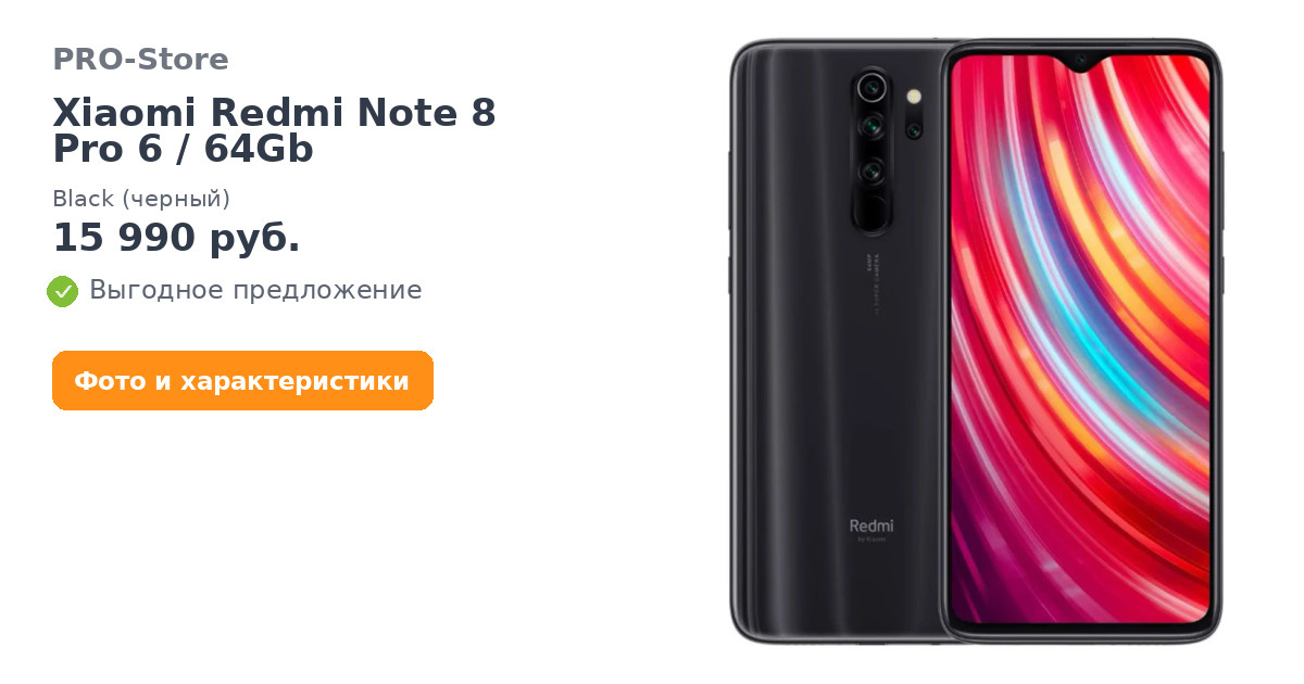 Смартфон Xiaomi Redmi Note 8 Pro 6/64Gb Black (черный) в наличии в интернет-магазине PRO-Store. Купите товар онлайн на сайте или можете заказать по телефону: 8 (800) 600-72-72. Быстрая доставка по Москве и России. Оплата возможна в рассрочку. В нашем каталоге только оригинальная продукция.