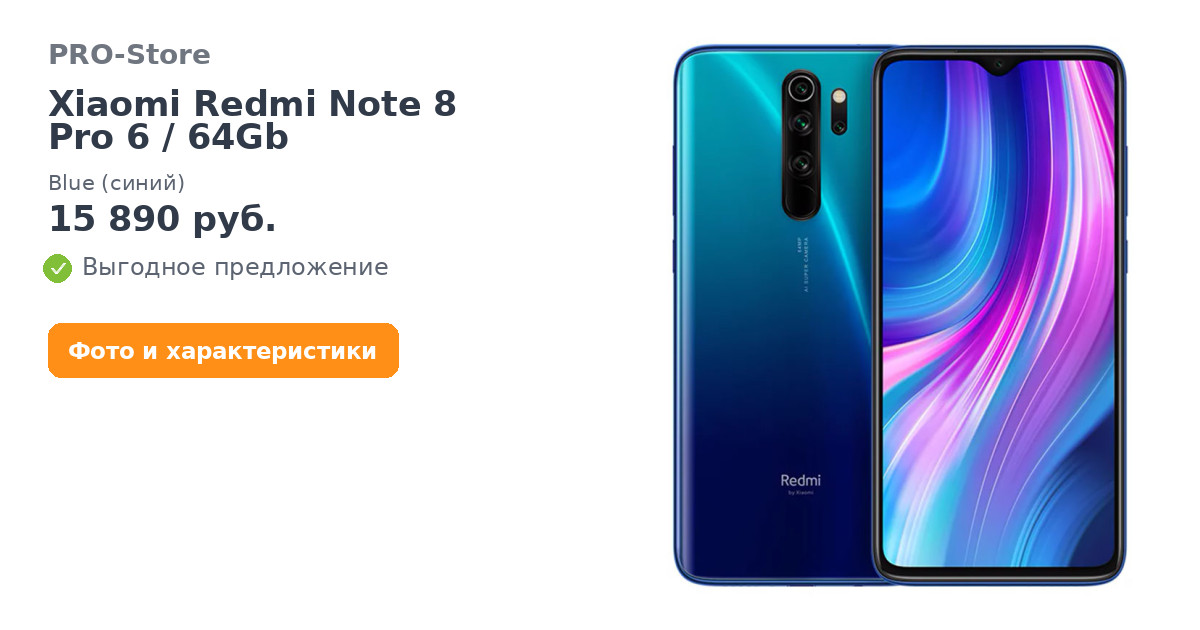 Смартфон Xiaomi Redmi Note 8 Pro 6/64Gb Blue (синий) в наличии в интернет-магазине PRO-Store. Купите товар онлайн на сайте или можете заказать по телефону: 8 (800) 600-72-72. Быстрая доставка по Москве и России. Оплата возможна в рассрочку. В нашем каталоге только оригинальная продукция.