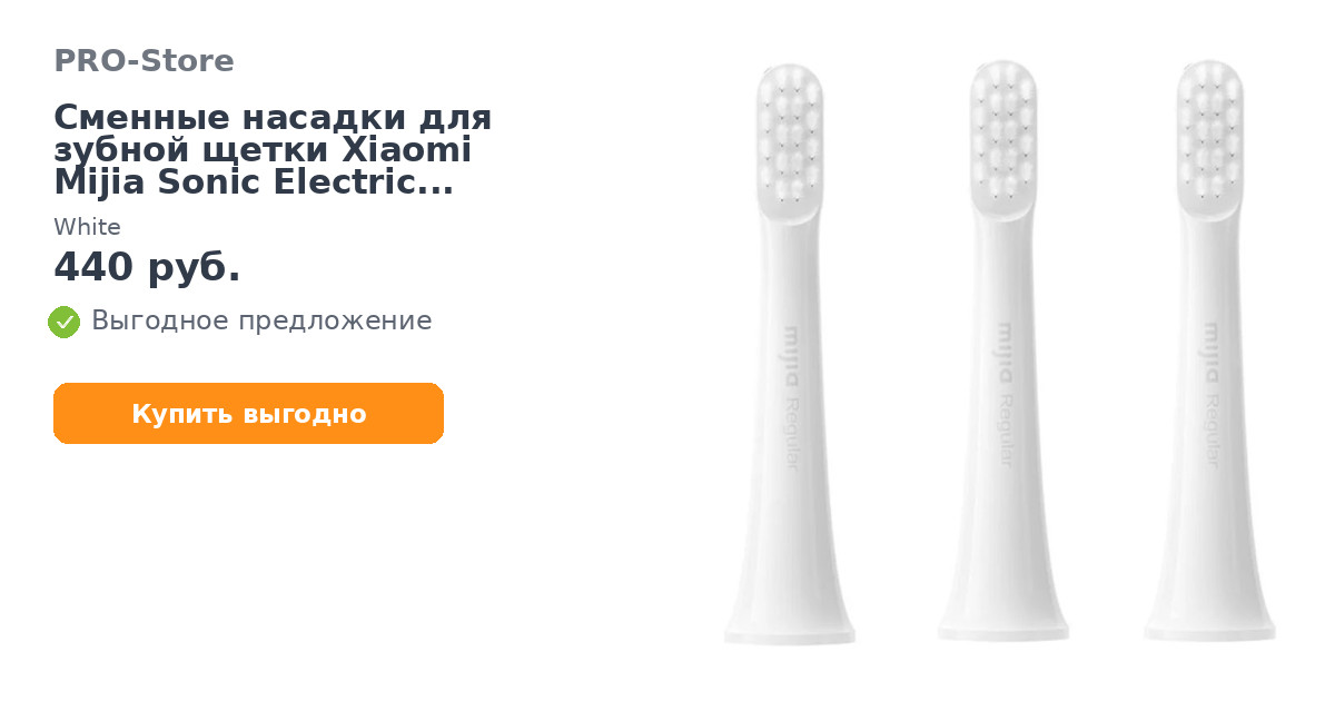 Сменные насадки для зубной щетки Xiaomi Mijia Sonic Electric Toothbrush T100 3шт White