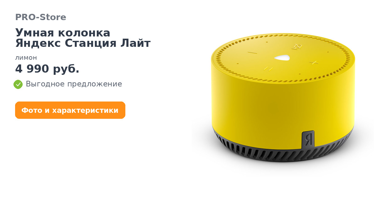 Умная колонка Яндекс Станция Лайт, лимон